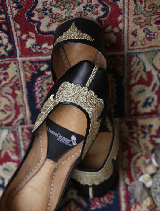 Shop elegant Black Khussa shoes – leather, plain & embroidered styles. Perfect for weddings, festive & casual wear. Buy stylish Black Khussa now!