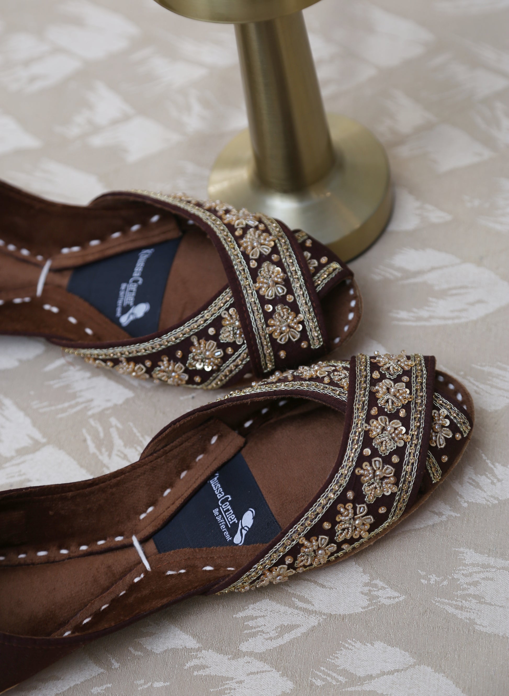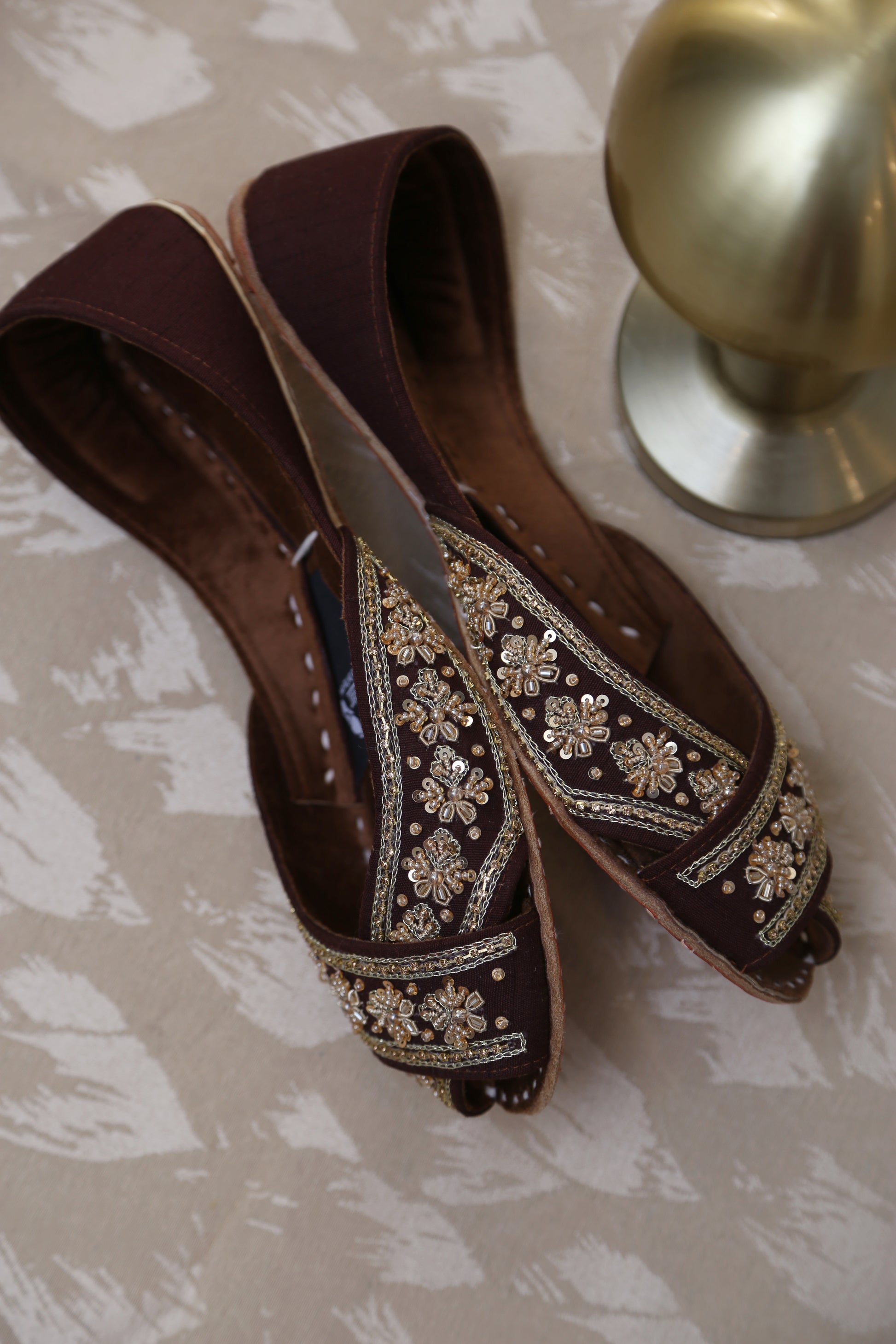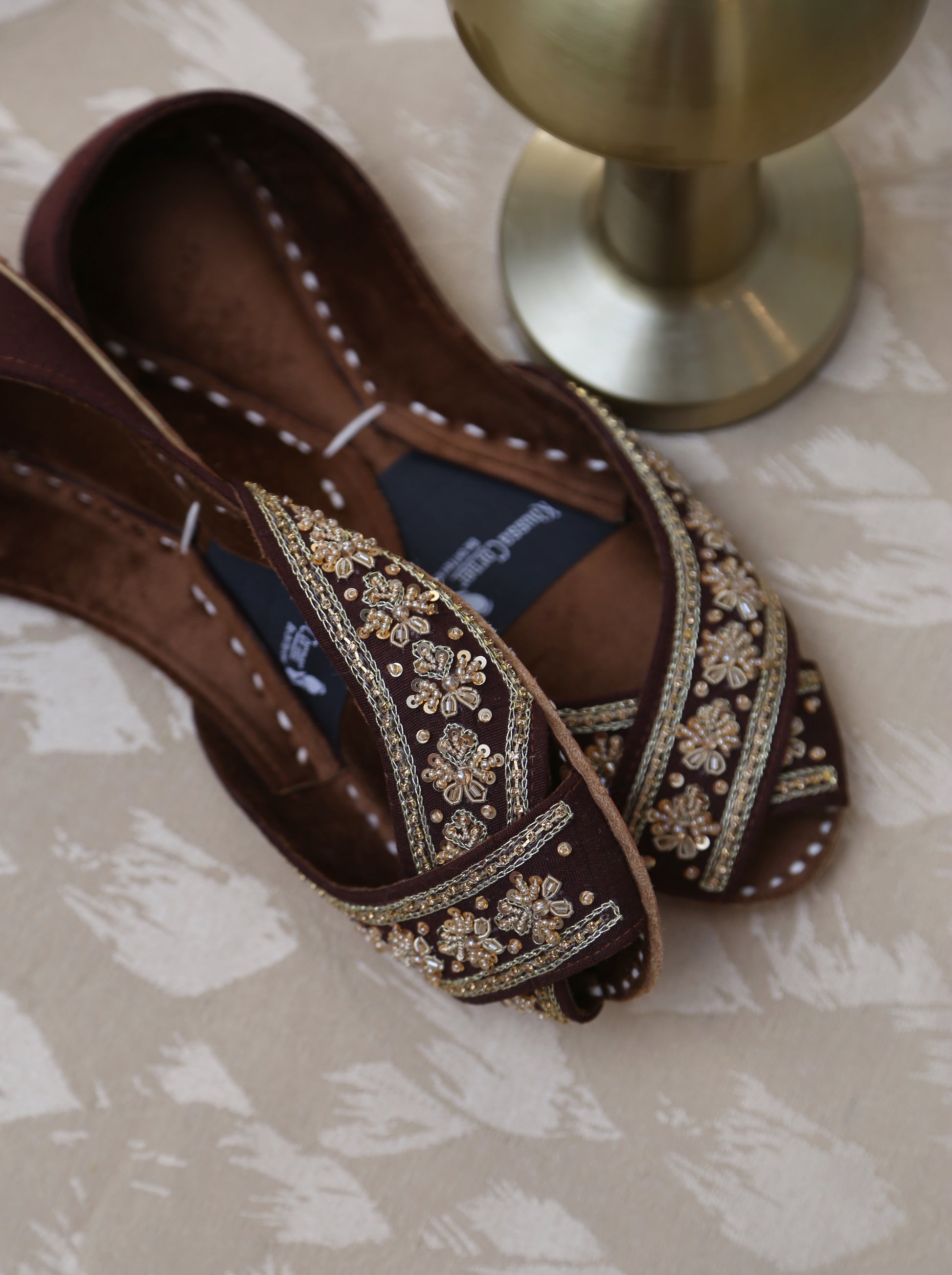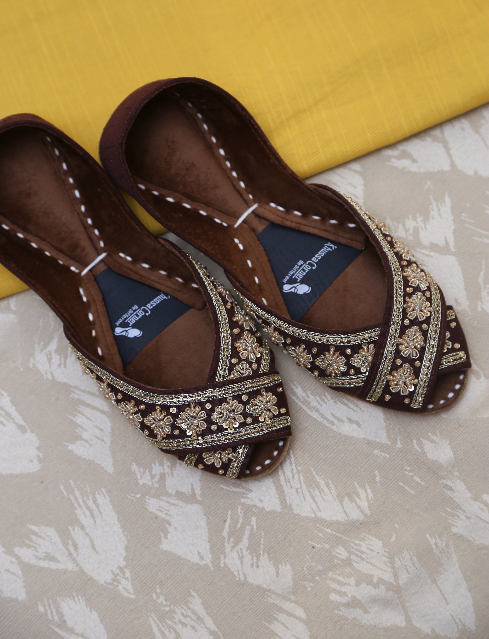 This Lavish Brown hand-embroidered hand made Peshawari makhmal khussa is a perfect blend of delicacy and charm. Whether you’re styling it with eastern elegance or adding a traditional touch to western wear, it’s a showstopper! 💖 This hand-embroidered Peshawari jutti is adorned with intricate kora, dabka, and sitara work