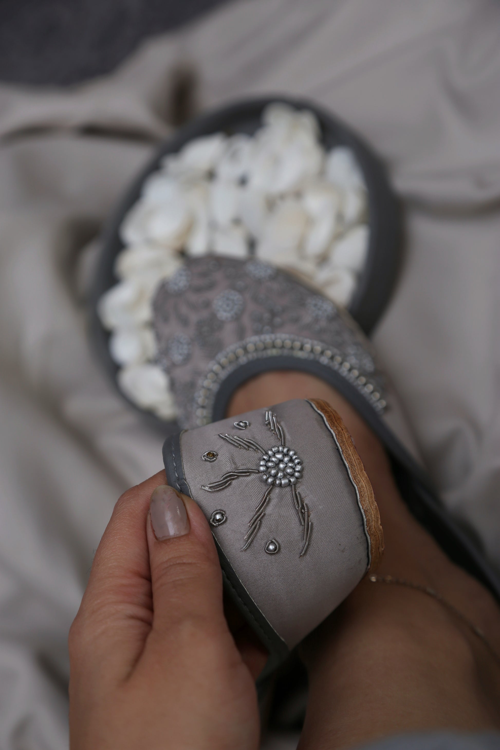 A modern, cool-toned twist on our signature jutti design.