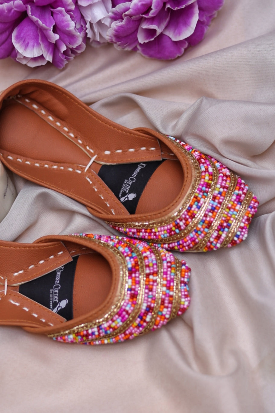 The fancy khussa, designed with its mesmerizing charm of colorful beads, promises to add a touch of vibrancy and elegance to your overall look. The intricate beadwork enhances the aesthetic appeal, making it a stylish and eye-catching choice for various occasions.