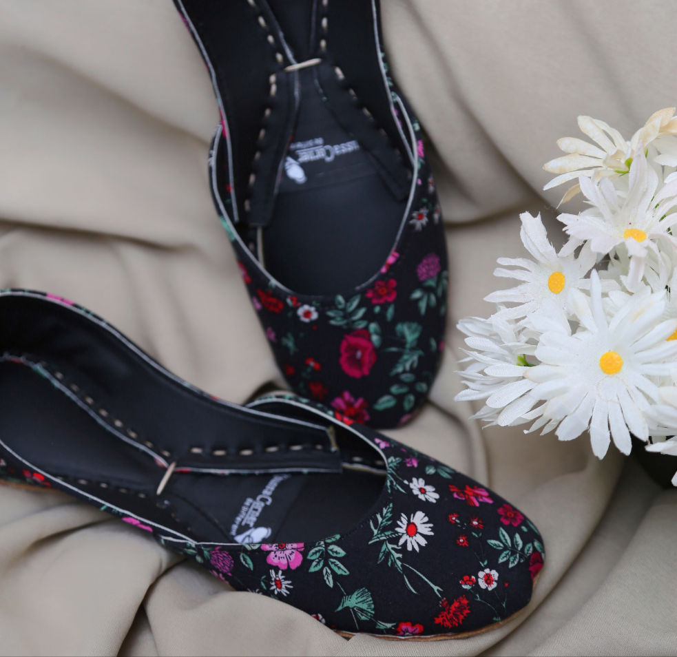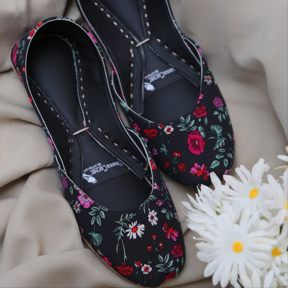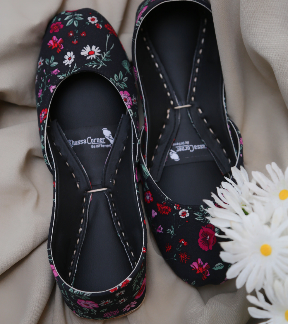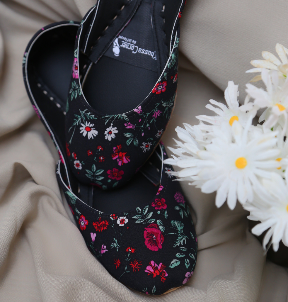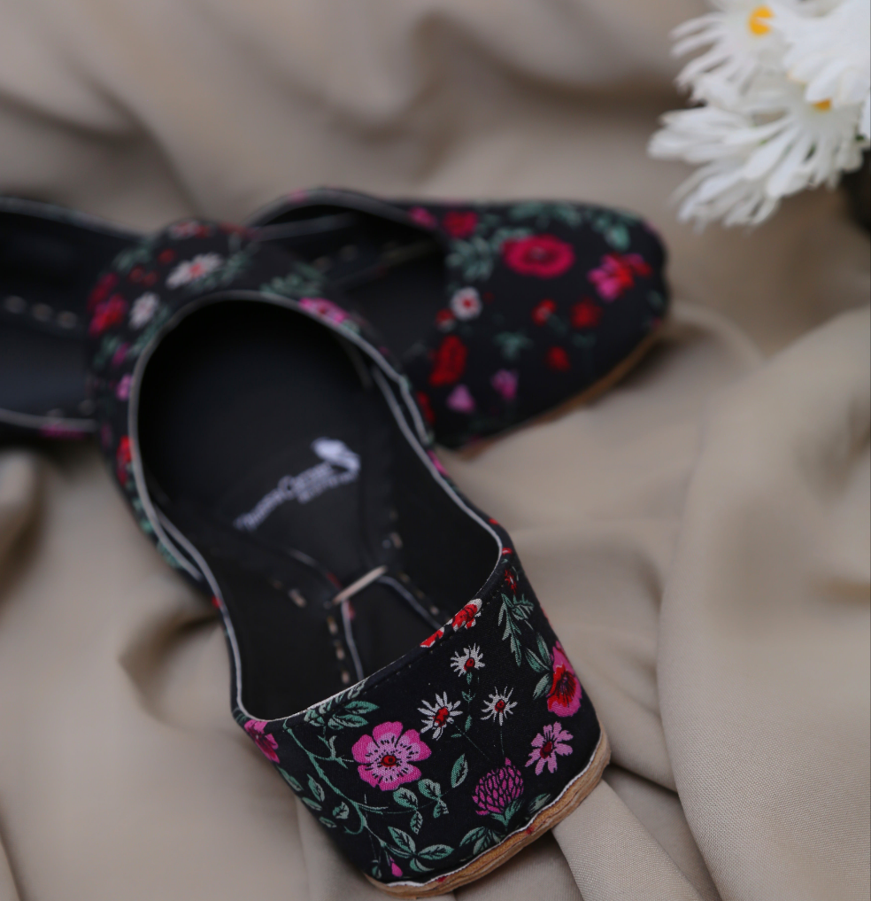 Bold meets beautiful in Noir Bloom. This black base khussa bursts with pink, red, and white florals for a dramatic flair that transitions effortlessly from festive to formal. A timeless piece that complements both western and eastern outfits.