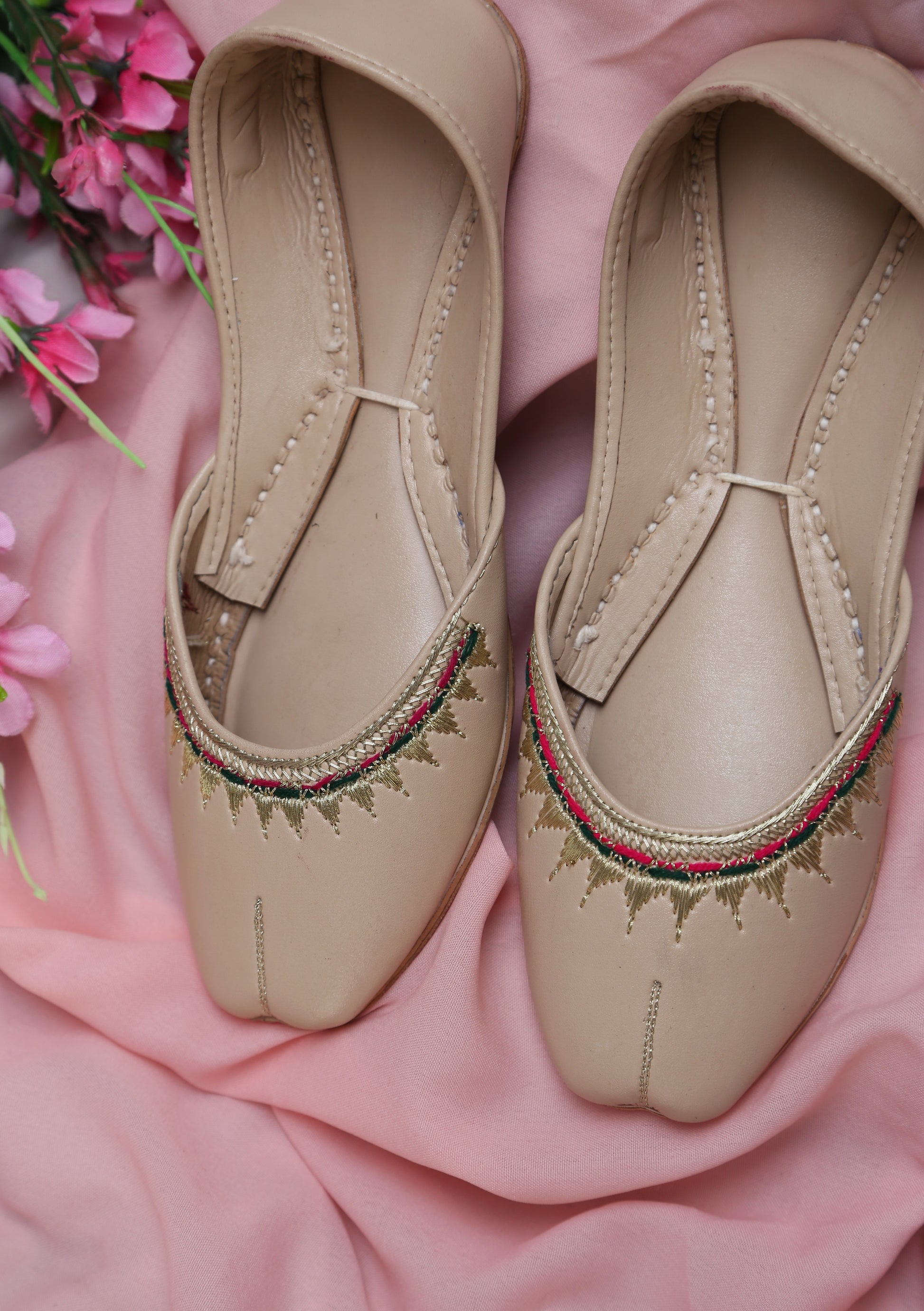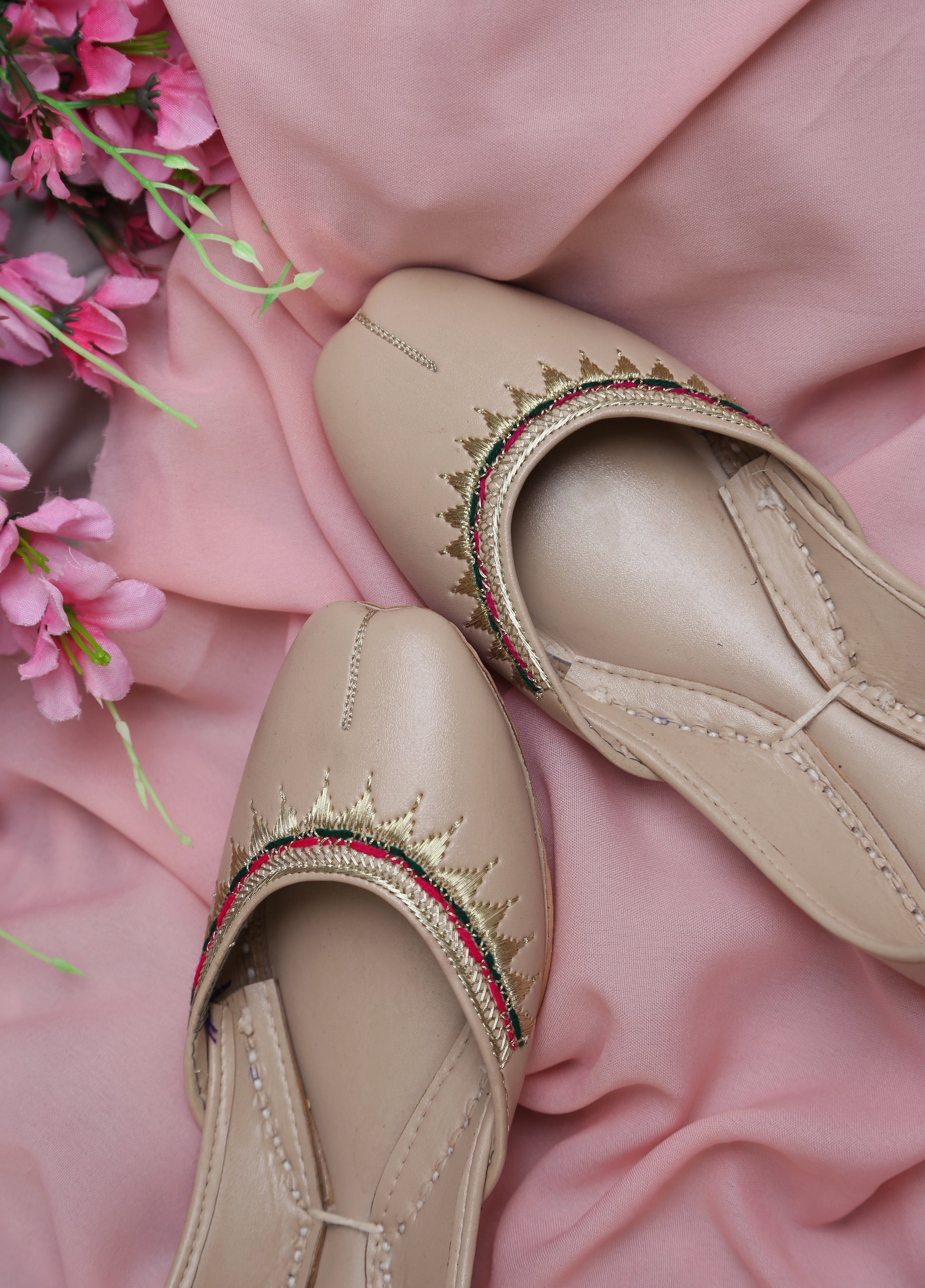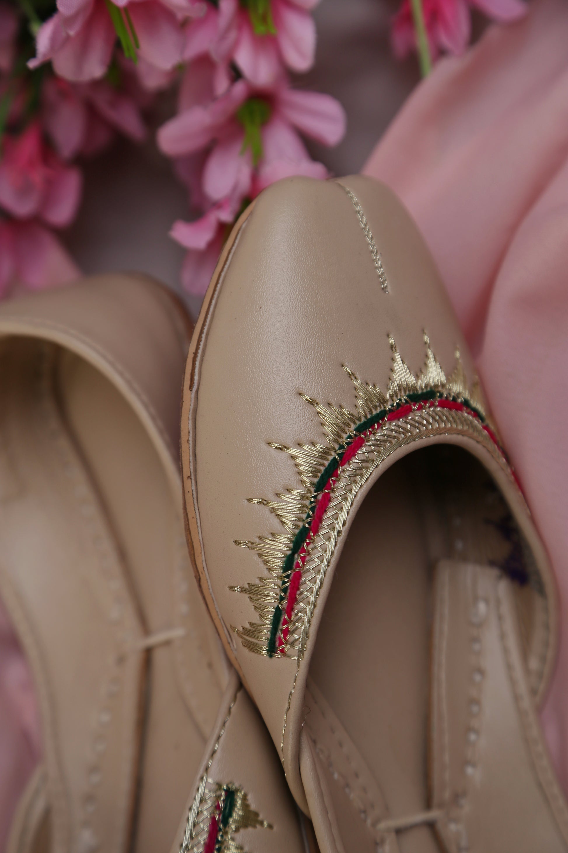 Crafted on premium ivory suede, this Parbati Khussa offers a timeless neutral tone with fine embroidery. Its suede base is for a smooth, matte finish, this khussa features delicate hand-embroidered detailing inspired by timeless ethnic motifs.