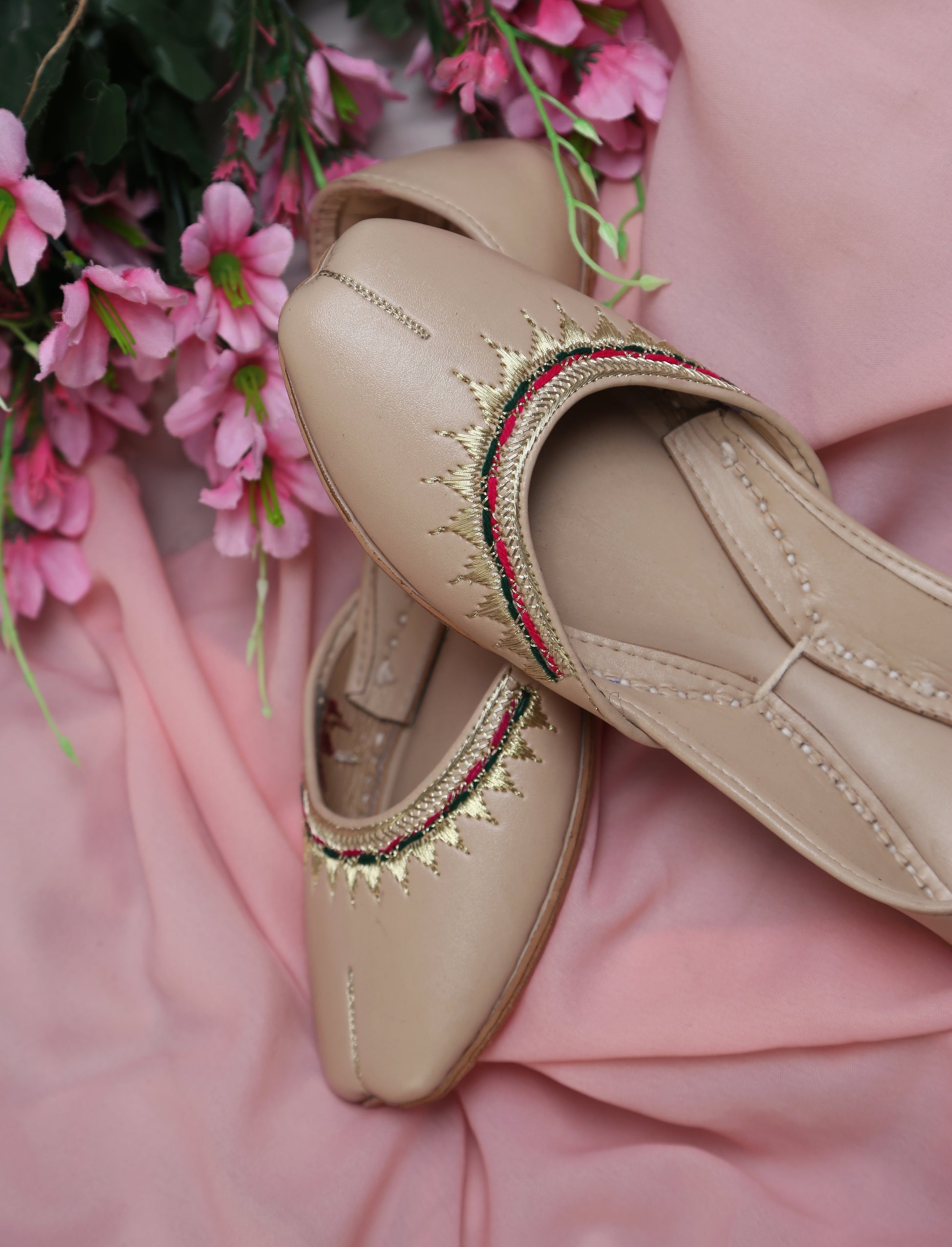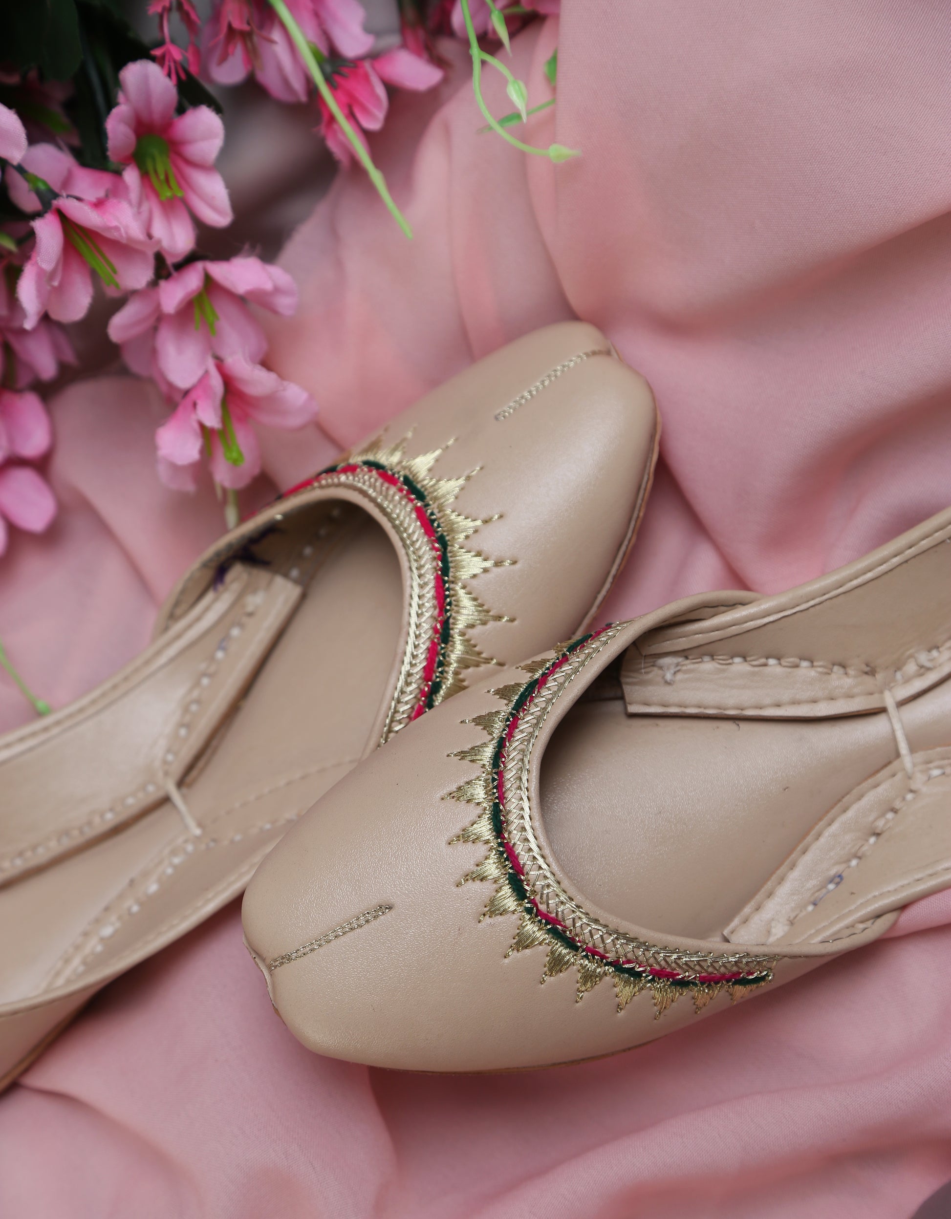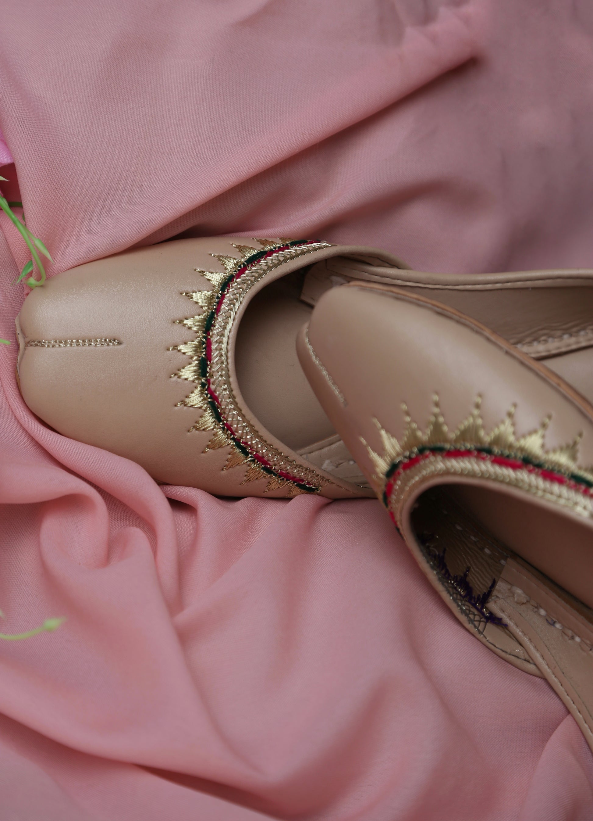 Crafted on premium ivory suede, this Parbati Khussa offers a timeless neutral tone with fine embroidery. Its suede base is for a smooth, matte finish, this khussa features delicate hand-embroidered detailing inspired by timeless ethnic motifs.
