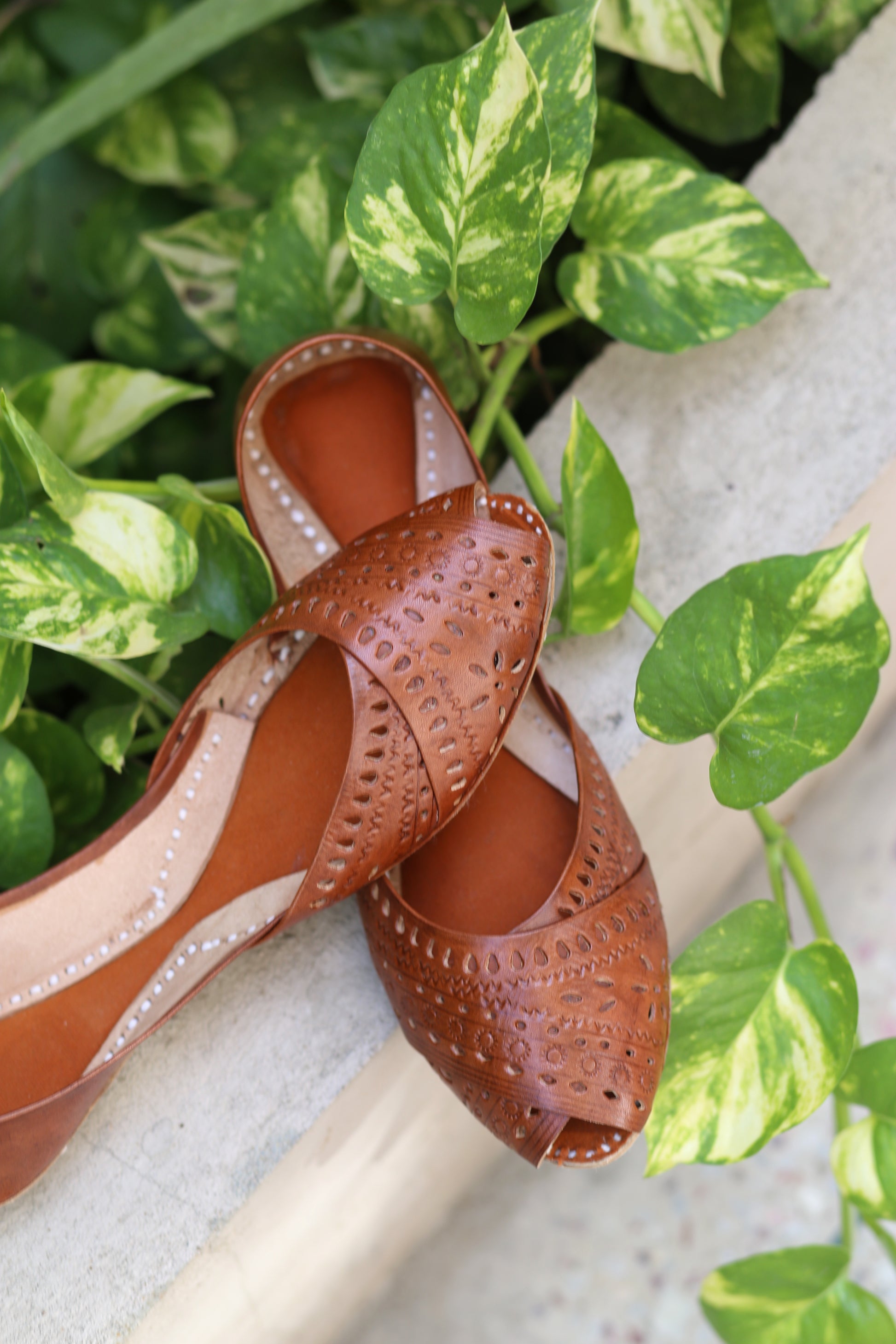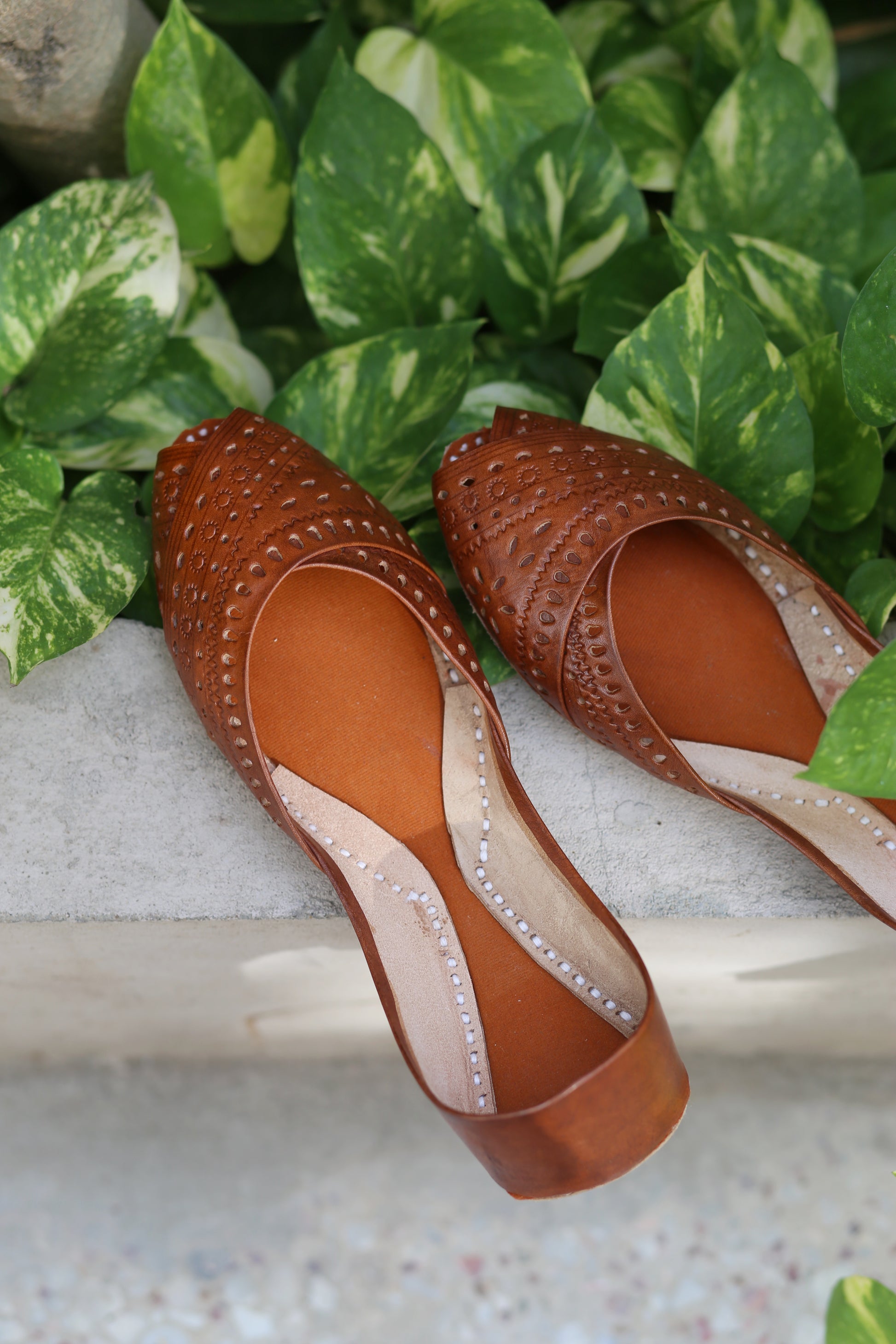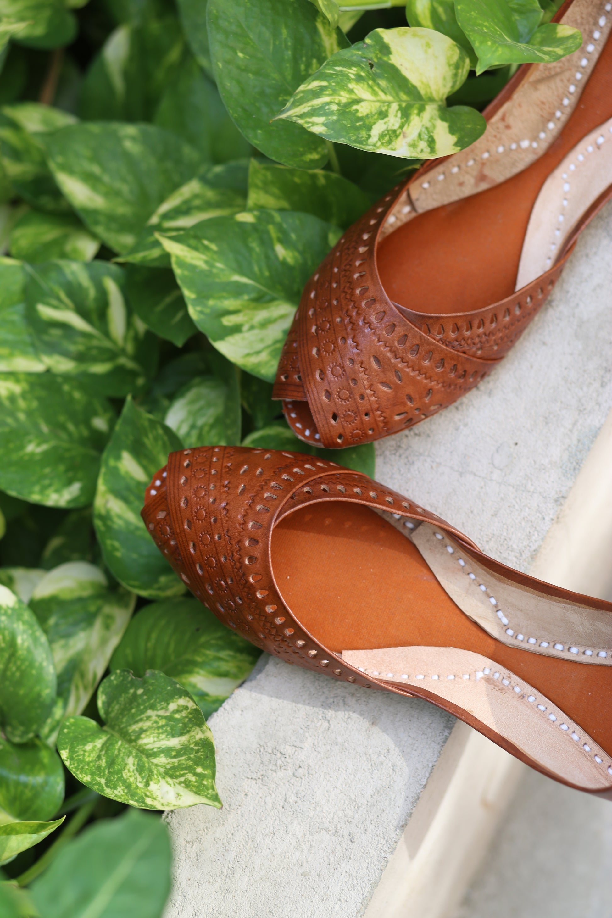 The Leather Peep-Toes Khussa is presented as a go-to choice for women, offering a blend of tradition and modernity with beautiful cut work. Its versatility allows it to be worn with a variety of outfits, making it a valuable addition to one's collection for daily wear.