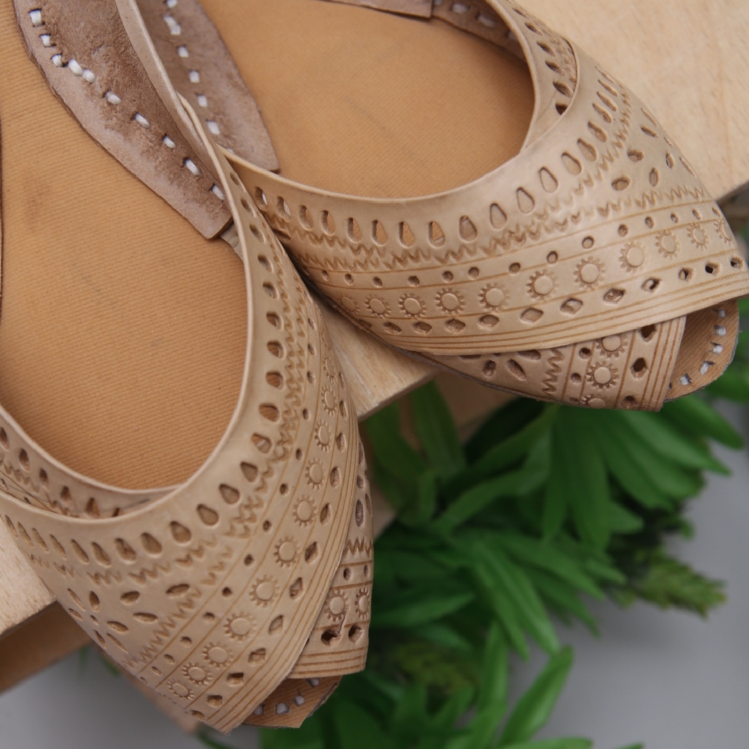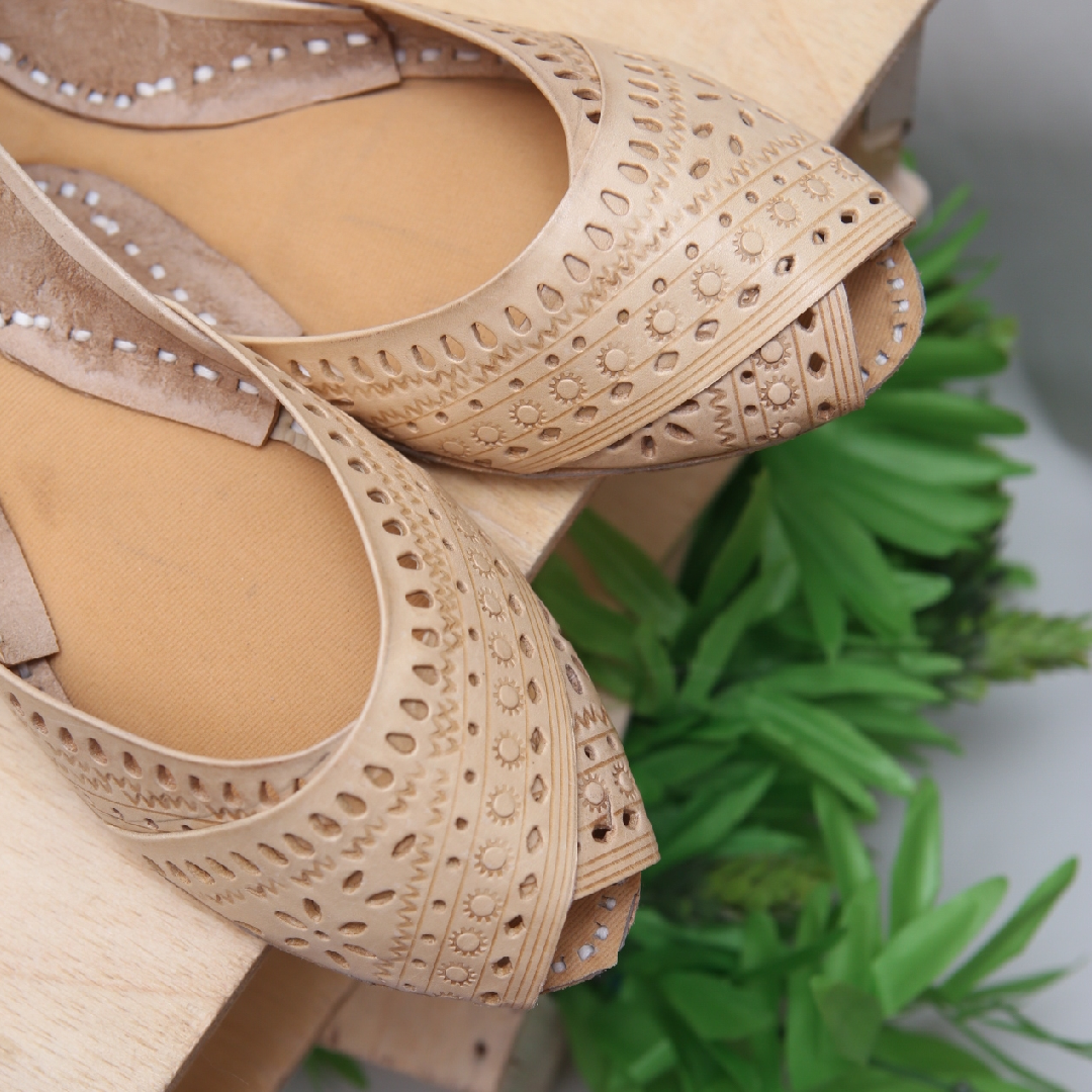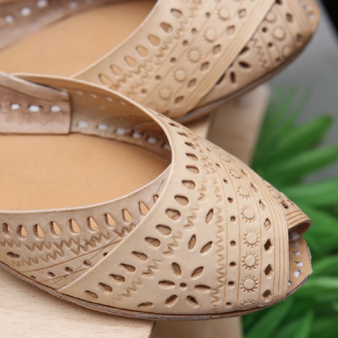 The Leather Peep-Toes Khussa is presented as a go-to choice for women, offering a blend of tradition and modernity with beautiful cut work. Its versatility allows it to be worn with a variety of outfits, making it a valuable addition to one's collection for daily wear.